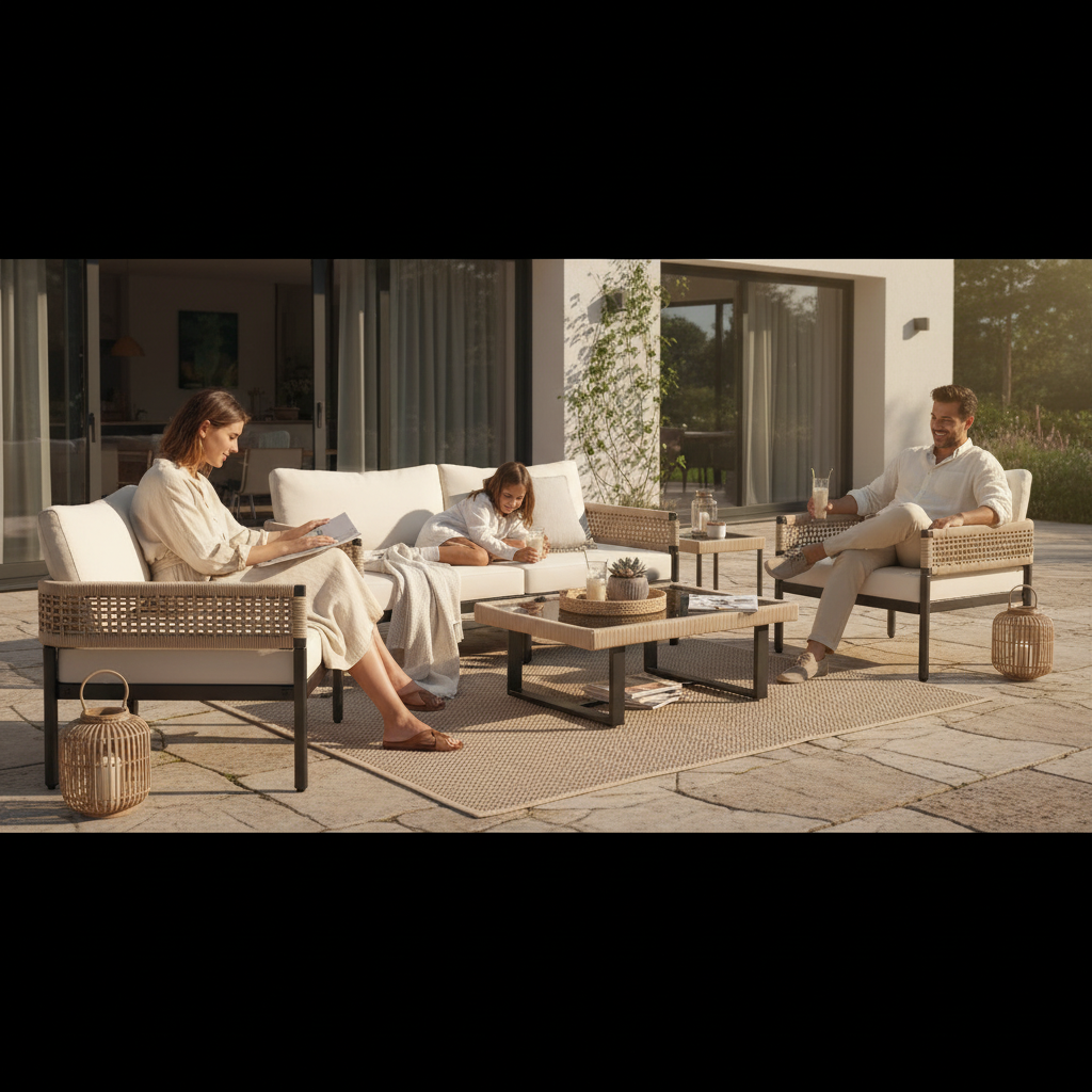 Un salon élégant, stable et confortable pour profiter pleinement de chaque moment dehors.
